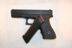 - With the muzzle pointed in a safe direction and your finger outside the trigger guard, remove the magazine from the